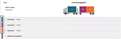 Reunanauhassa näkyvät ajoneuvoyhdistelmään lastattujen toimitusten värit.