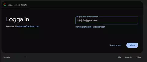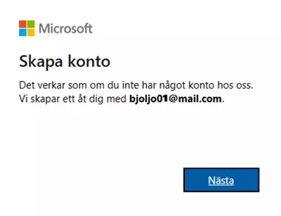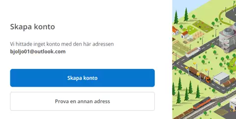 4. Jos et ole aiemmin kirjautunut sisään sähköpostiosoitteellasi, sinulle annetaan mahdollisuus luoda tili. Napsauta "Skapa konto" (Luo tili).