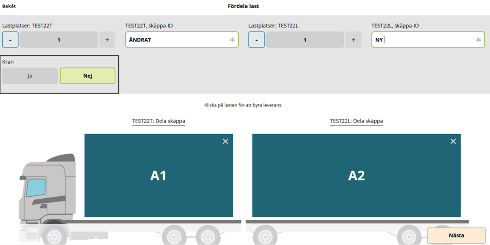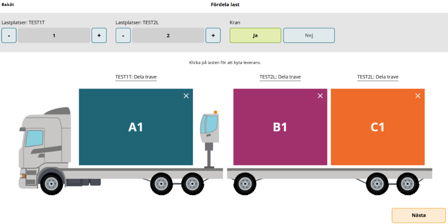 Klickar du på krysset på den borttagna lastplatsen kommer du tillbaka till ursprungsläget.